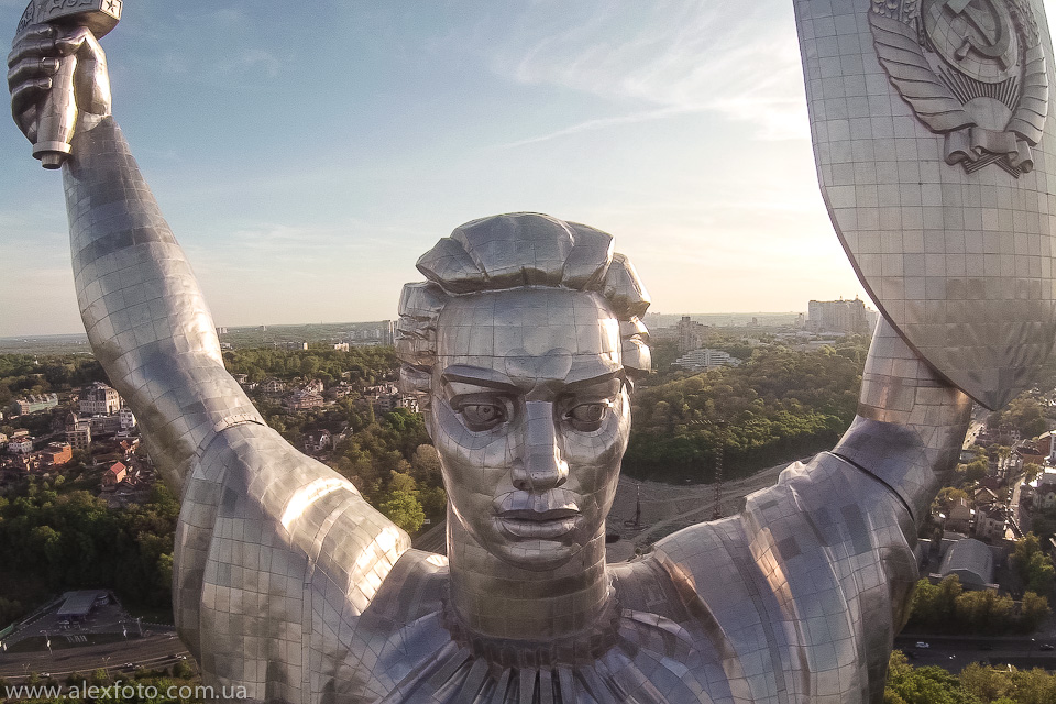 Решил взглянуть на наш киевский монумент Родина-мать (она же баба с мечем) чуть ближе. Оказалось что с близи она еще страшней чем снизу %)